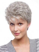 Durable Wigs For Elderly Lady With Synthetic Grey Cut Wavy Style