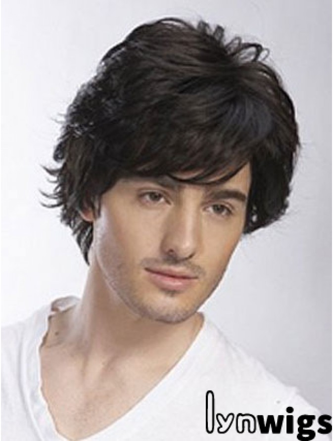 Brown Shoulder Length Wavy Layered 14 inch Affordable Medium Wigs