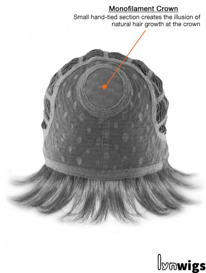 The Crown area has fine wefts allowing for the air to breathe, which has then been delicately covered with sheer netting for structure & comfort. There is also a soft, finishing strip at the edge of the wig, so that it will sit comfortably against your skin. At the crown area is a circular section of sheer MONOFILAMENT. This means that wherever you part the wig at this section, it will give the impression that the hair is coming from your own scalp.