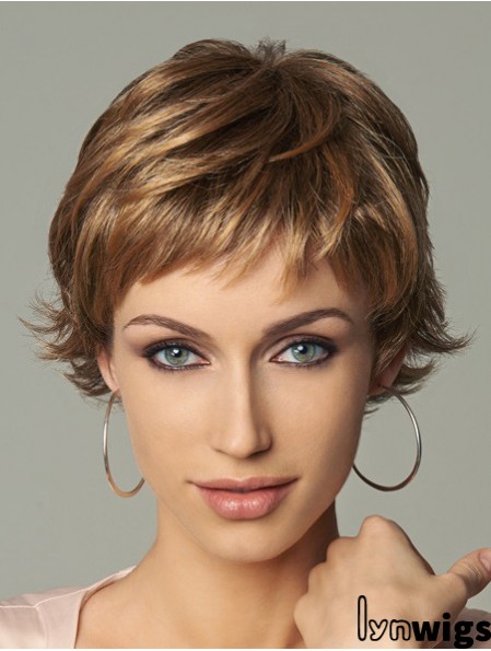 Brown Boycuts Cropped 6 inch Straight Synthetic Mono Wig