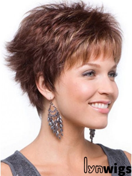 Straight Brown Synthetic Boycuts 4 inch Short Ladies Wigs