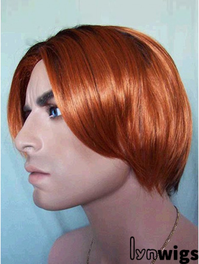 Lace Front Auburn 8 inch Straight Synthetic Nature Looking Mans Wigs