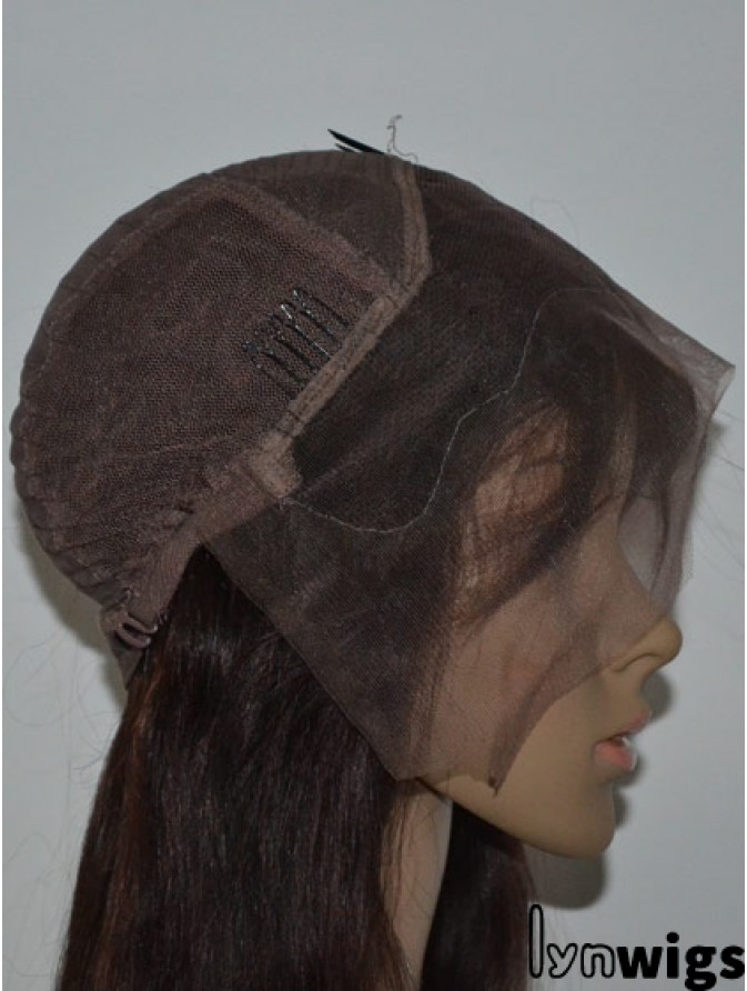 Without Bangs Long Black Straight 16 inch No-Fuss Human Hair Wigs