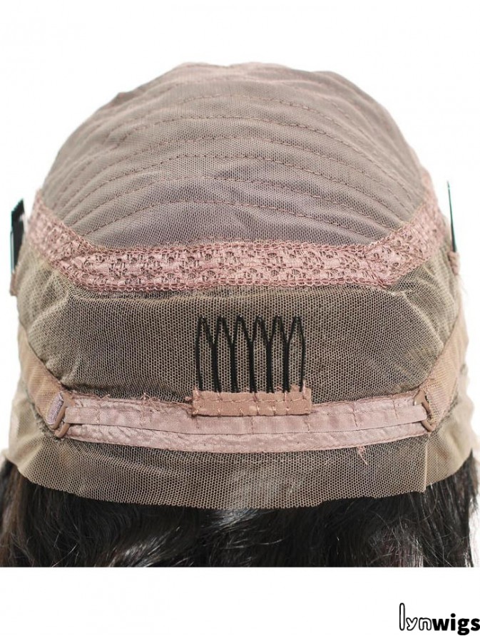 Remy Human Hair Black Wavy 18 inch Without Bangs 360 Lace Wigs