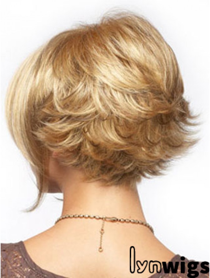 Monofilament 16 inch Wavy Blonde Without Bangs Lace Wigs Synthetic