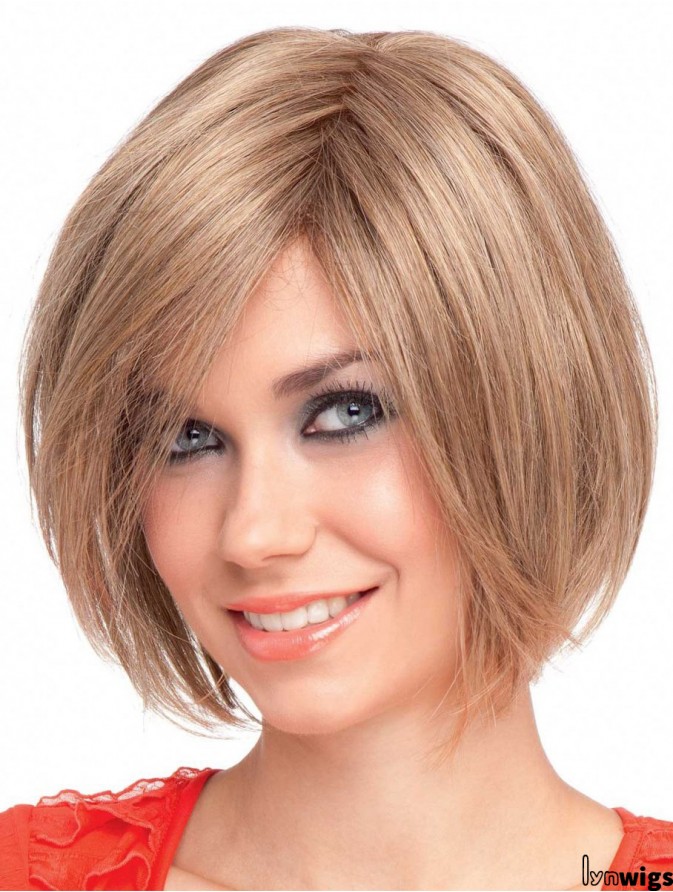 Bobs Wig Chin Length Straight Style Blonde Color With Capless
