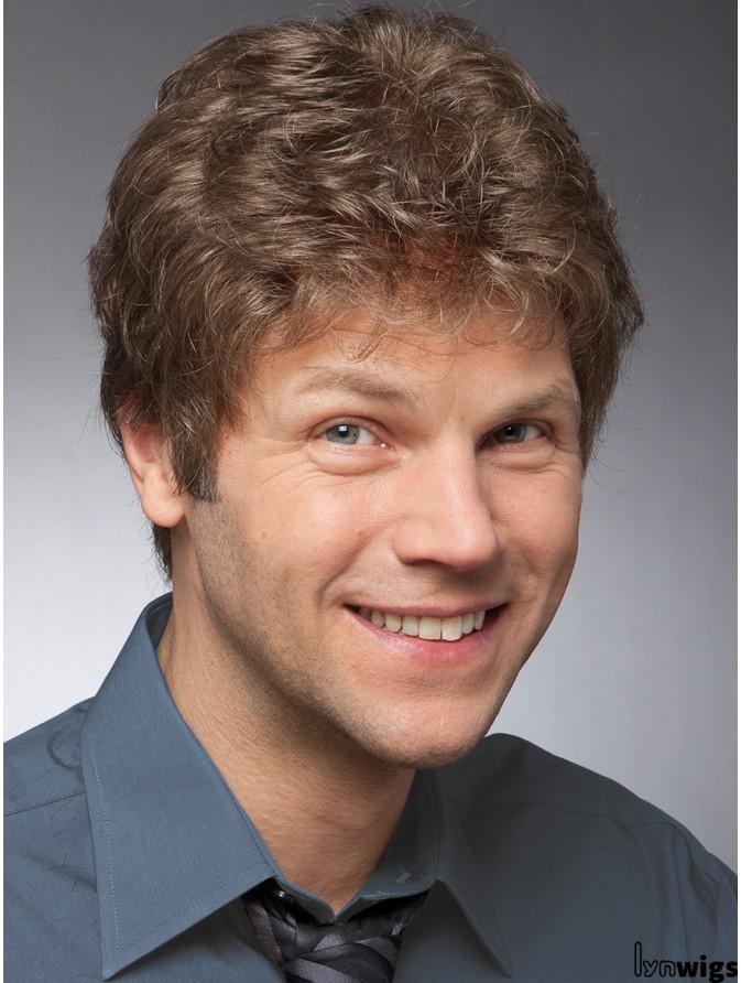 Brown Short Wavy Monofilam Remy Human Hair For Men