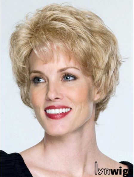 Classic Cap Wigs Remy Human Blonde Color Wavy Style Short Length
