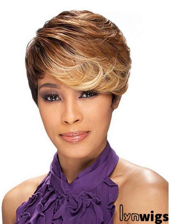 Cropped Brown Layered Capless Wavy Synthetic African Hairstyles