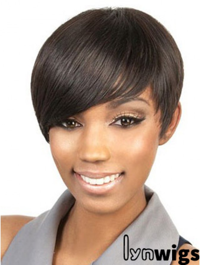 Cropped Brown Straight Boycuts Suitable African American Wigs