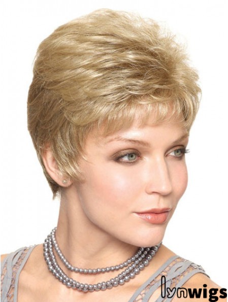 Blonde Cropped Straight Capless Boycuts 6inch Trendy Synthetic Wigs For Elderly Lady