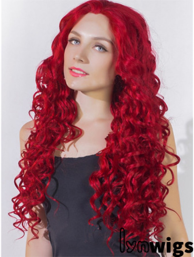 Curly Without Bangs Lace Front Popular 24 inch Red Long Wigs