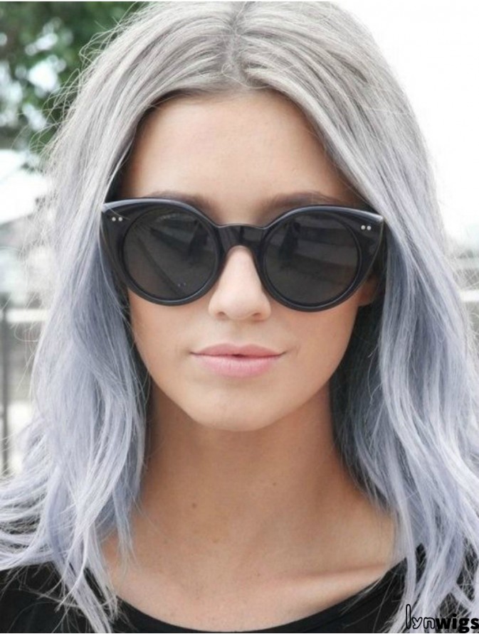 Discount Long Straight 18 inch Synthetic Grey Wigs