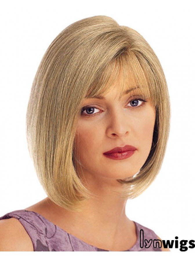 Chin Length Straight Blonde With Bangs UK Cheap Monofilament Wigs