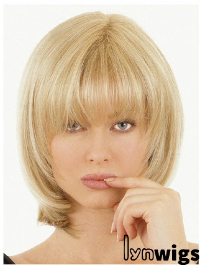 Blonde 14 inch Without Bangs Shoulder Length Ideal Monofilament Wigs