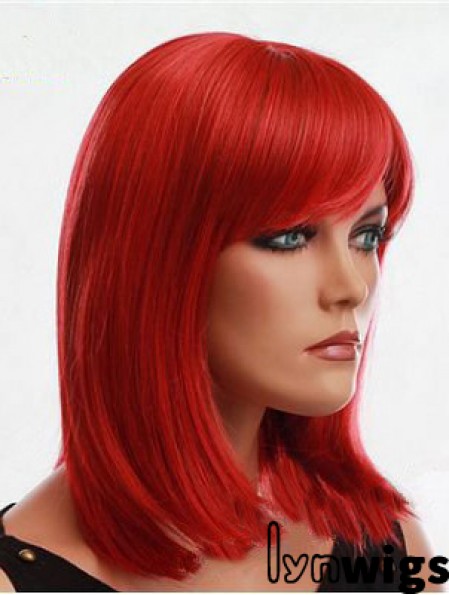 Human Hair Red Wig With Bangs Capless Red Color Straight Style