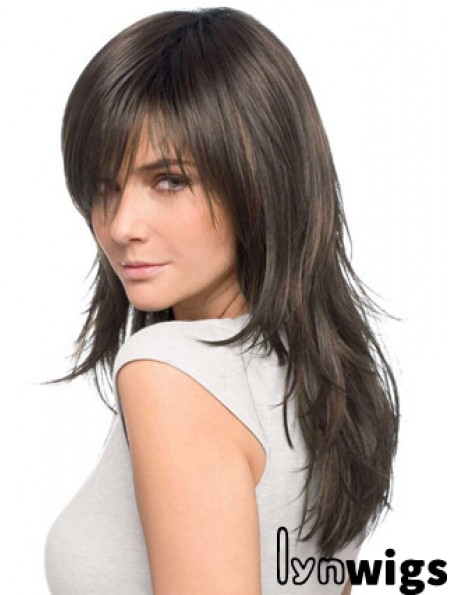 Fabulous Brown Long Straight Layered 18 inch Human Hair Wigs