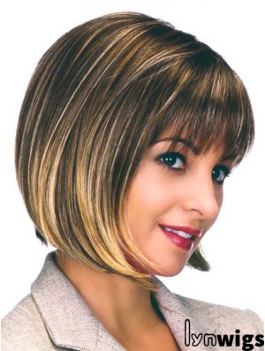 Capless Brown 6 inch Short With Bangs Synthetic Wigs