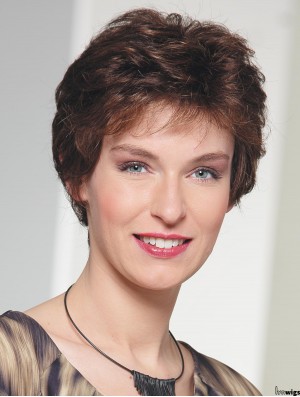 Chin Length Wavy Layered Brown Ideal 100% Hand-tied Wigs