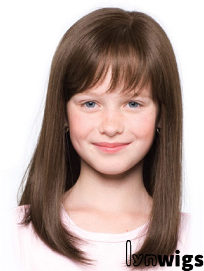 Straight Shoulder Length Brown Synthetic 100% Hand-tied Kids Wigs
