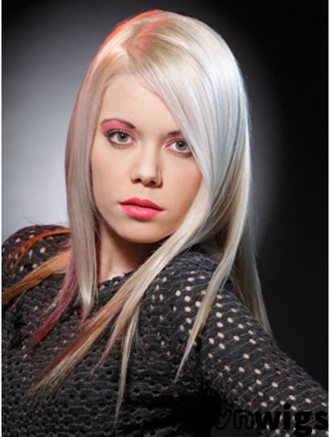Lace Front Without Bangs Long Straight 16 inch Platinum Blonde Good Fashion Wigs
