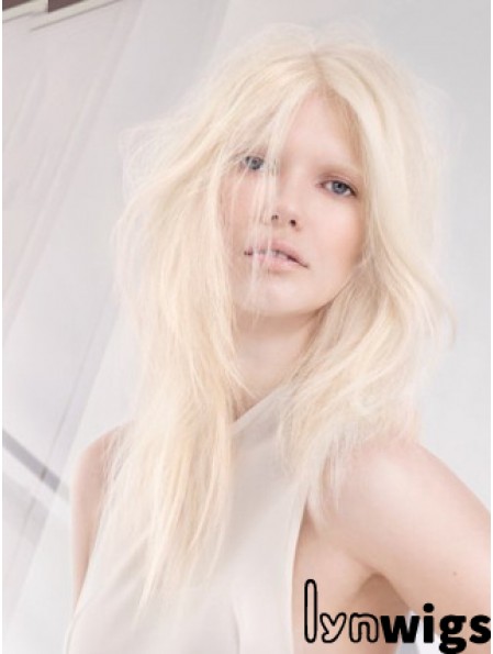 Lace Front Without Bangs Long Straight 18 inch Platinum Blonde Soft Fashion Wigs