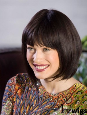 Straight Shoulder Length 14 inch Brown 100% Hand-tied Wigs