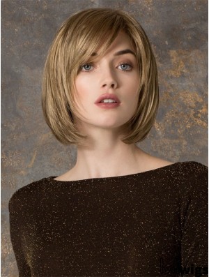 Blonde 16 inch Sleek Long Straight With Bangs Lace Wigs