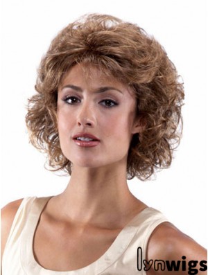 16 inch Black Shoulder Length Without Bangs Curly Affordable Lace Wigs