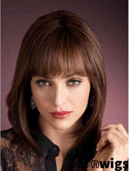 Light Auburn Human Wigs With Bangs Capless Straight Style Shoulder Length