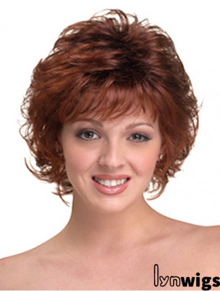 Synthetic Hair Head Wigs With Capless Auburn Color Chin Length
