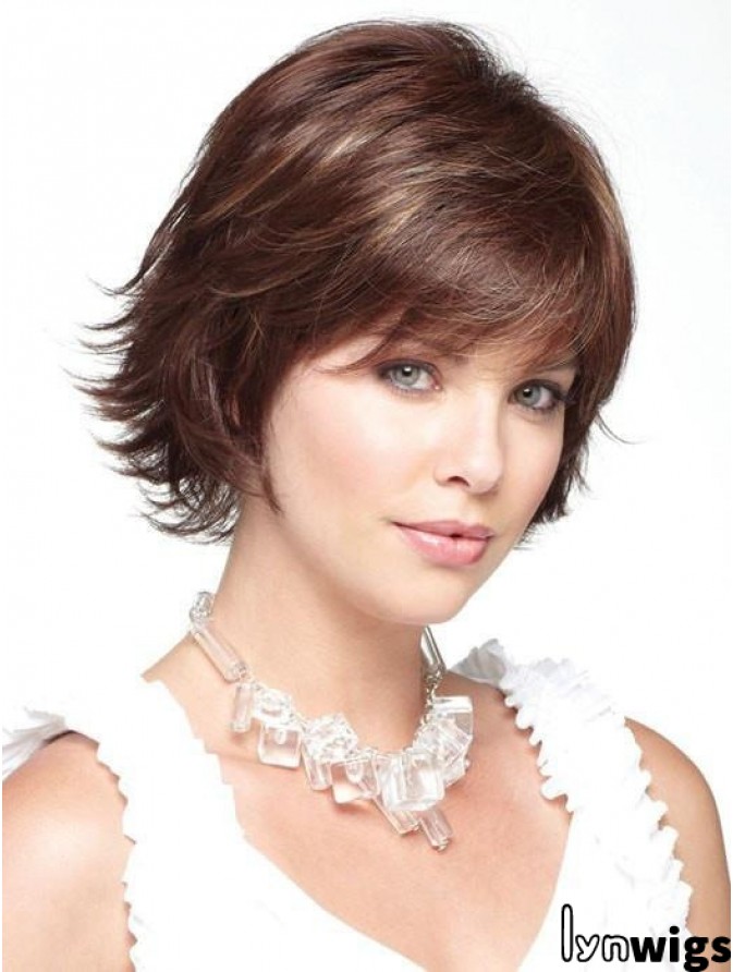 Capless Brown 6 inch Short With Bangs Synthetic Wigs