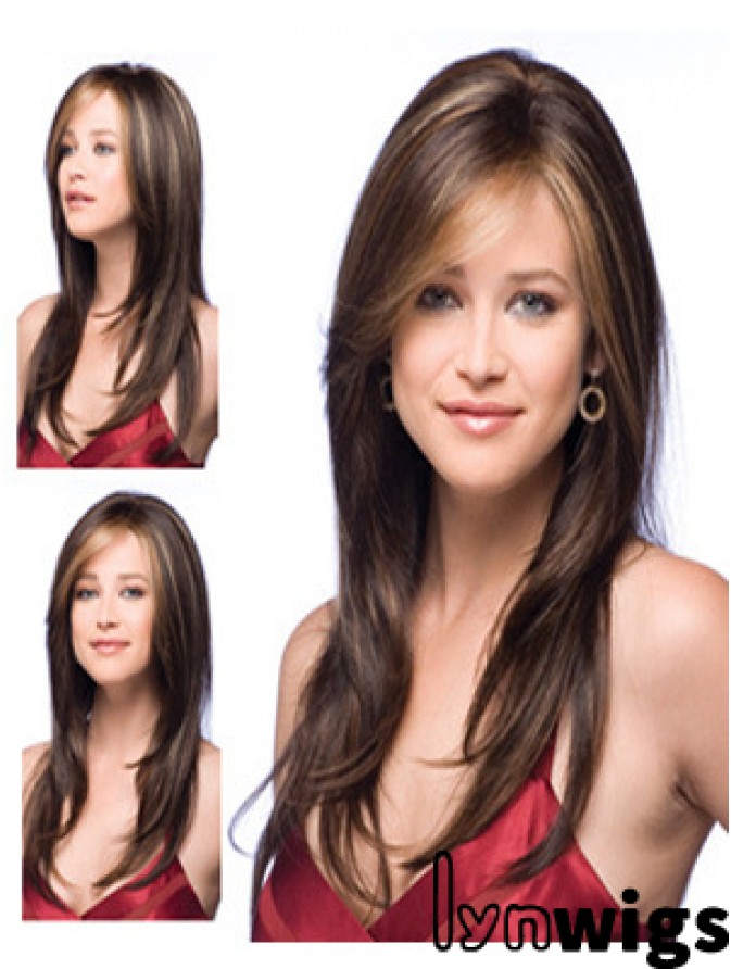 Monofilament Filament Wigs With Lace Front Layered Cut Auburn Color