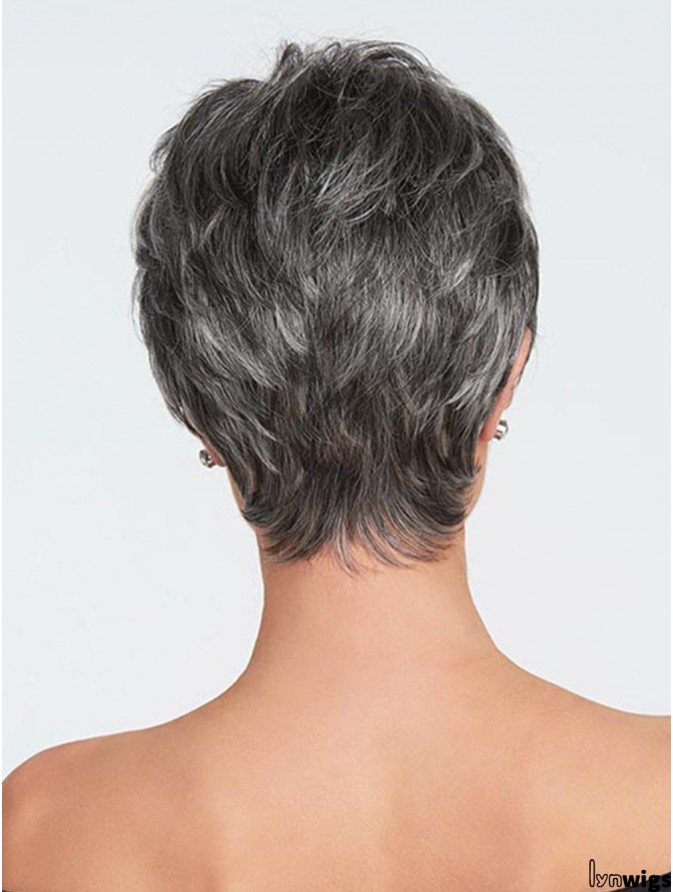 Monofilament Wavy Cropped 5 inch Grey Wigs For Women