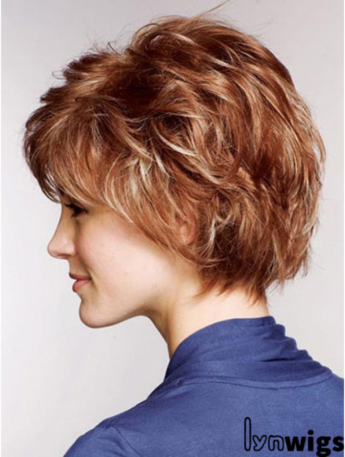 Remy Human Layered Straight Short Auburn Petite Wigs Monofilament