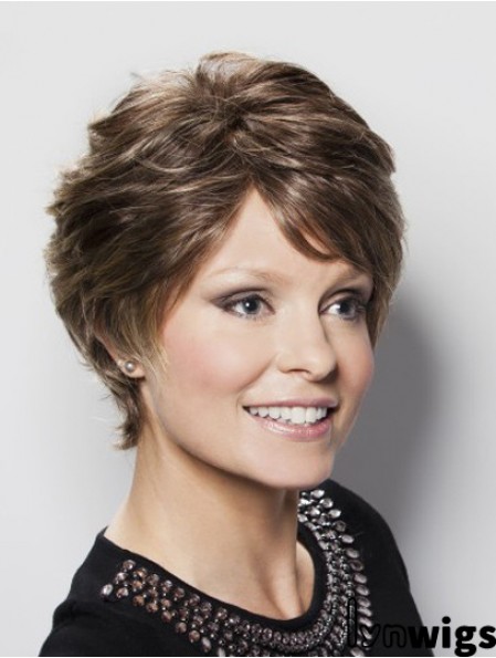 Short Wavy Human Hair Wigs Wavy Style Short Length Brown Color