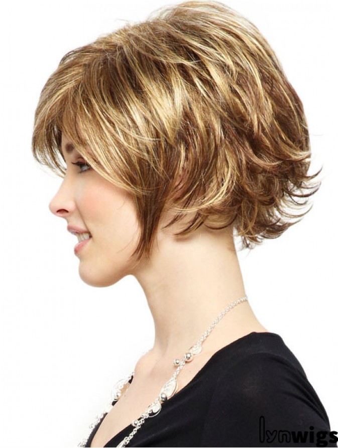Ladies Synthetic Wigs UK Sale Chin Length Brown Color Wavy Style