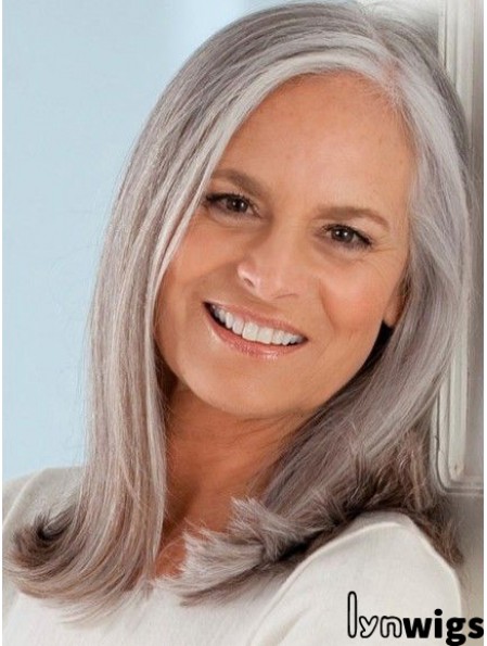 Stylish Lace Wigs 100% Hand Tied Remy Straight Style Grey Cut