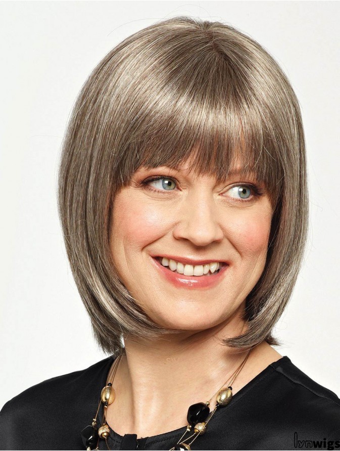 Synthetic Trendy Chin Length Wavy Grey Wigs