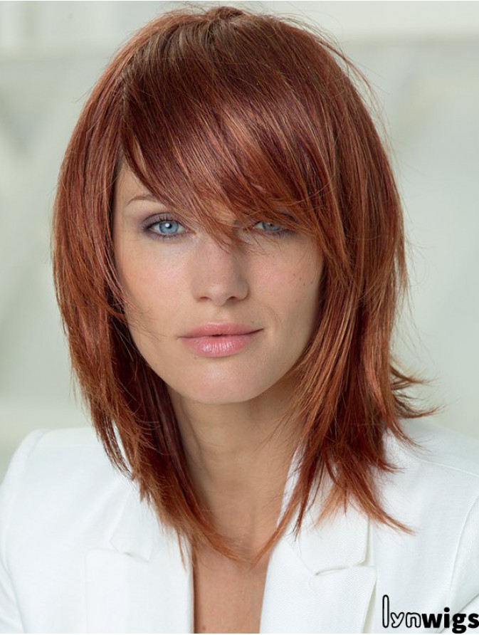 Shoulder Length Layered Straight Auburn Cheap Synthetic Wigs