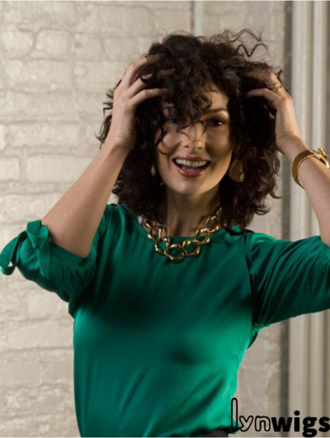Brown Shoulder Length Curly Without Bangs 13 inch Style Medium Wigs