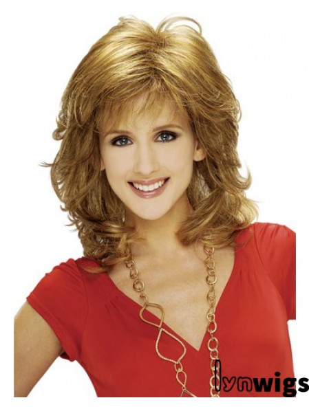 Wavy Blonde Comfortable Shoulder Length Classic Wigs
