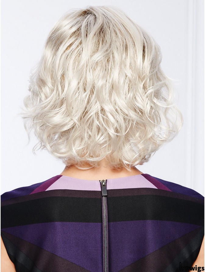 Monofilament 12 inch Shoulder Length Synthetic Wavy Ladies Grey Wigs
