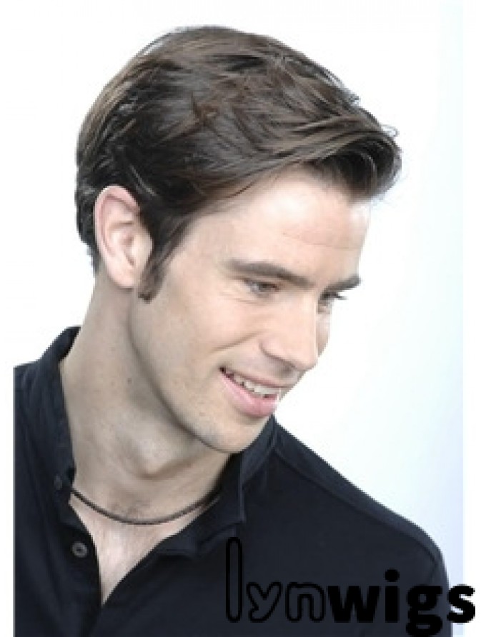 Straight Short 100% Hand Tied Brown Lace Wigs For Men