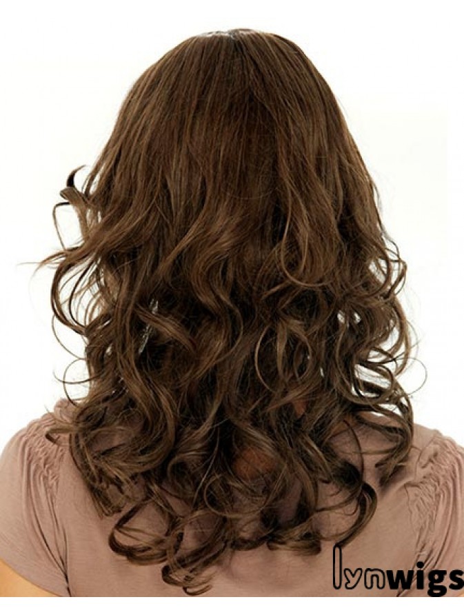 Beautiful Flexibility Brown Long Curly With Bangs 18inch Lace Front Mono Human Hair Wigs