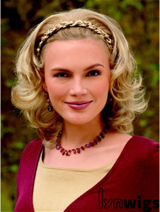 Shoulder Length Layered 18 inch Wavy Blonde Medium Wigs