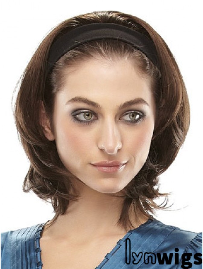 Brown 14 inch Fabulous Shoulder Length Straight With Bangs Lace Wigs