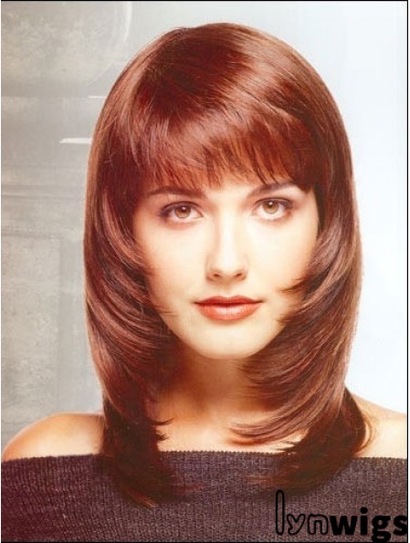 Fashion Straight Red Shoulder Length With Bangs Medium Wigs
