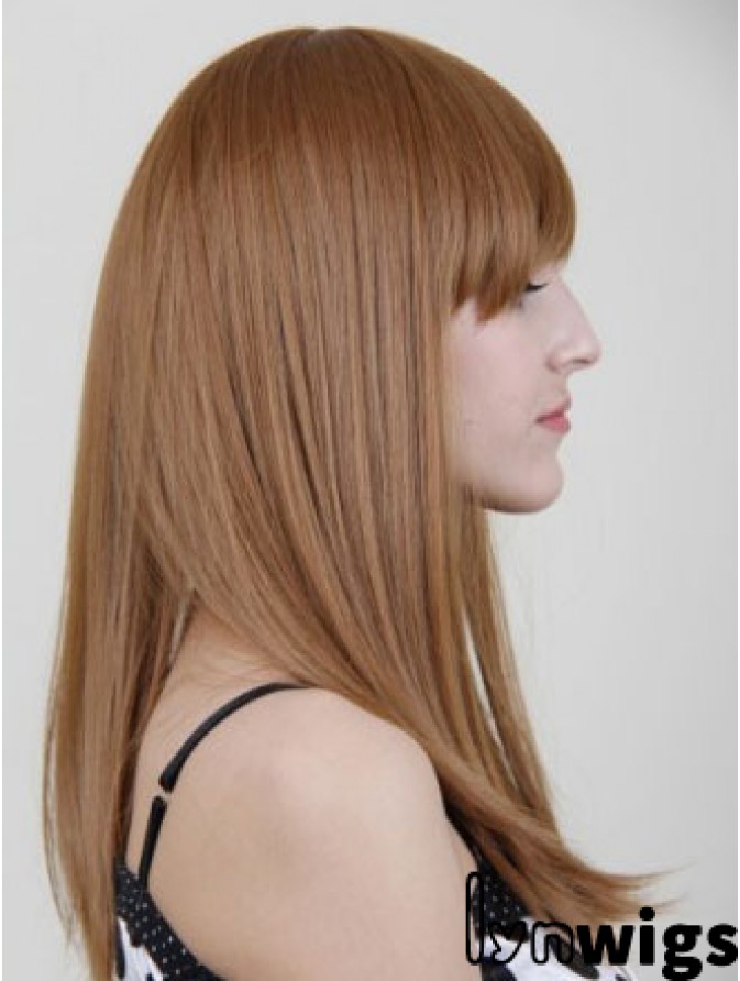 With Bangs Stylish Straight Auburn Long Human Hair Wigs